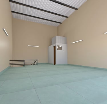 First floor RCC walls along with roofing sheet, polycarbonate sheets for natural light & turbo for ventilation